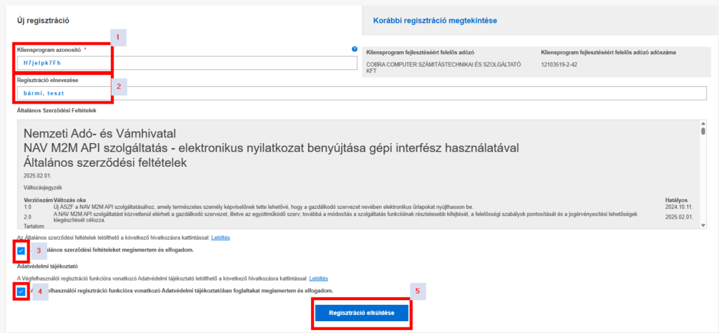 • a szoftverfejlesztő által létrehozott kliensprogram, amely a NAV szervereivel kommunikál: ez a CobraContoLight, mely jogosultságot kapott a NAV-tól az M2M kommunikáció végzésére. Önnek ezzel nincs teendője.